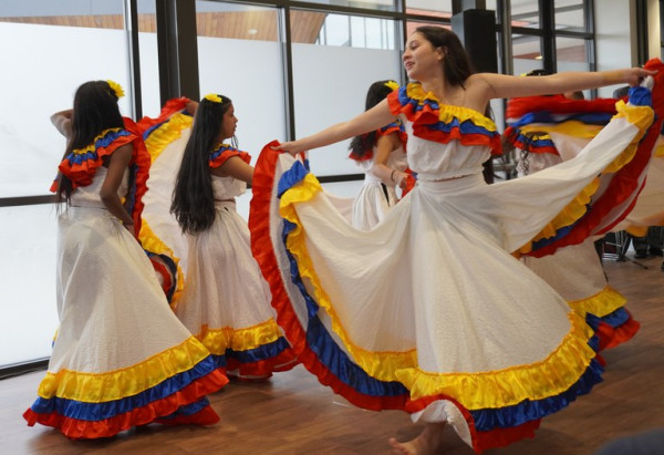 Columbian dancers performing at the pōwhiri